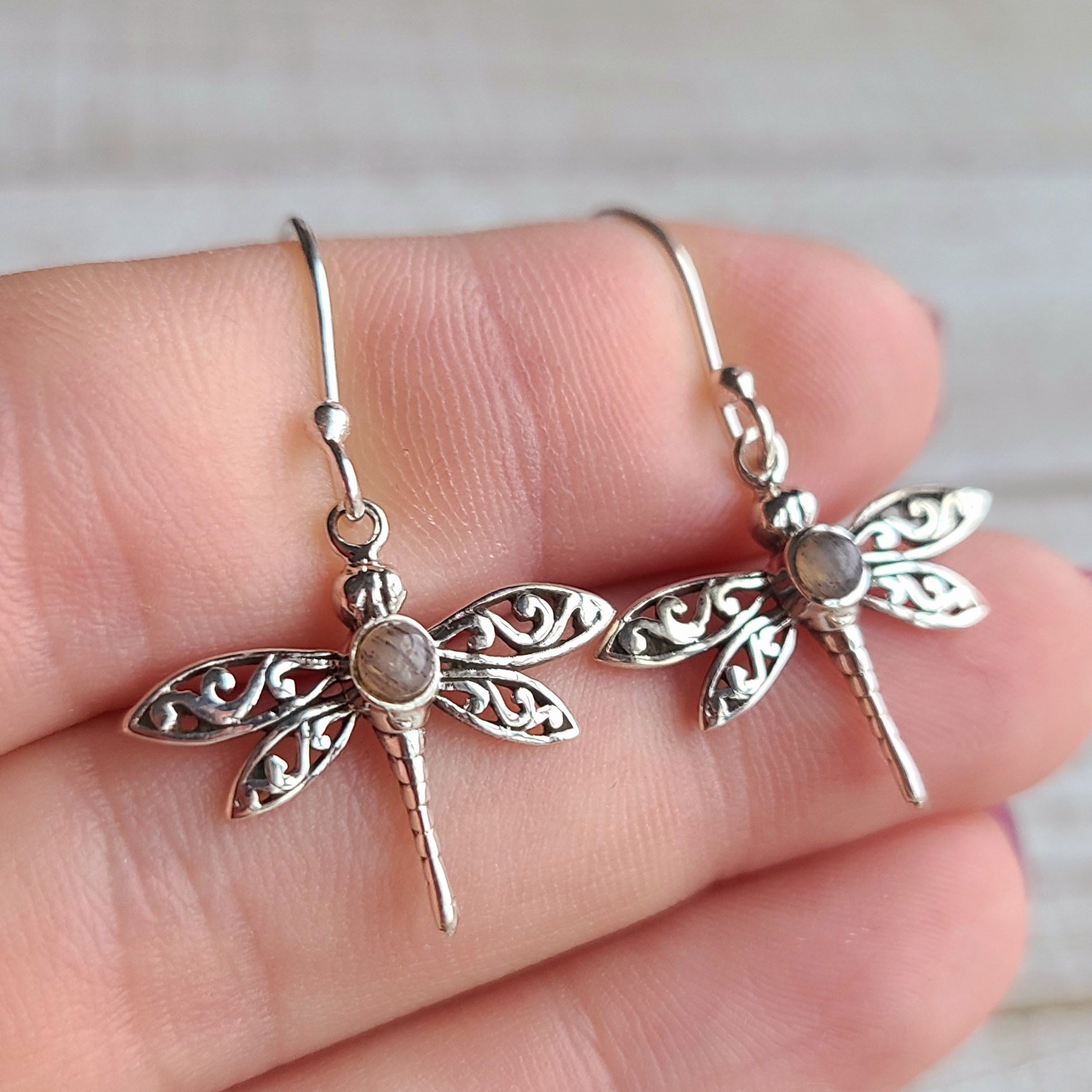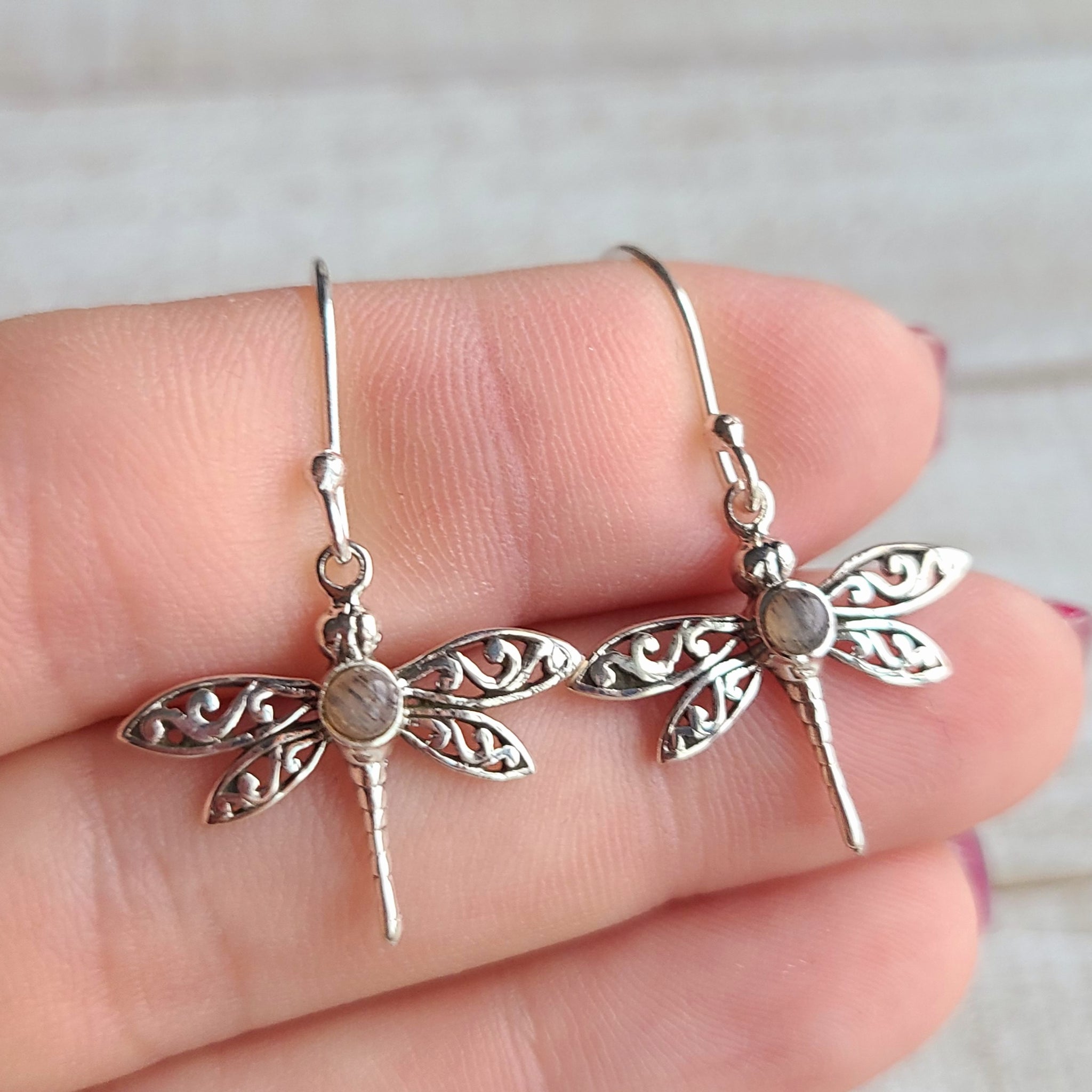 ~Dragonfly - Black Sandstone - Namibia 925 Earrings~