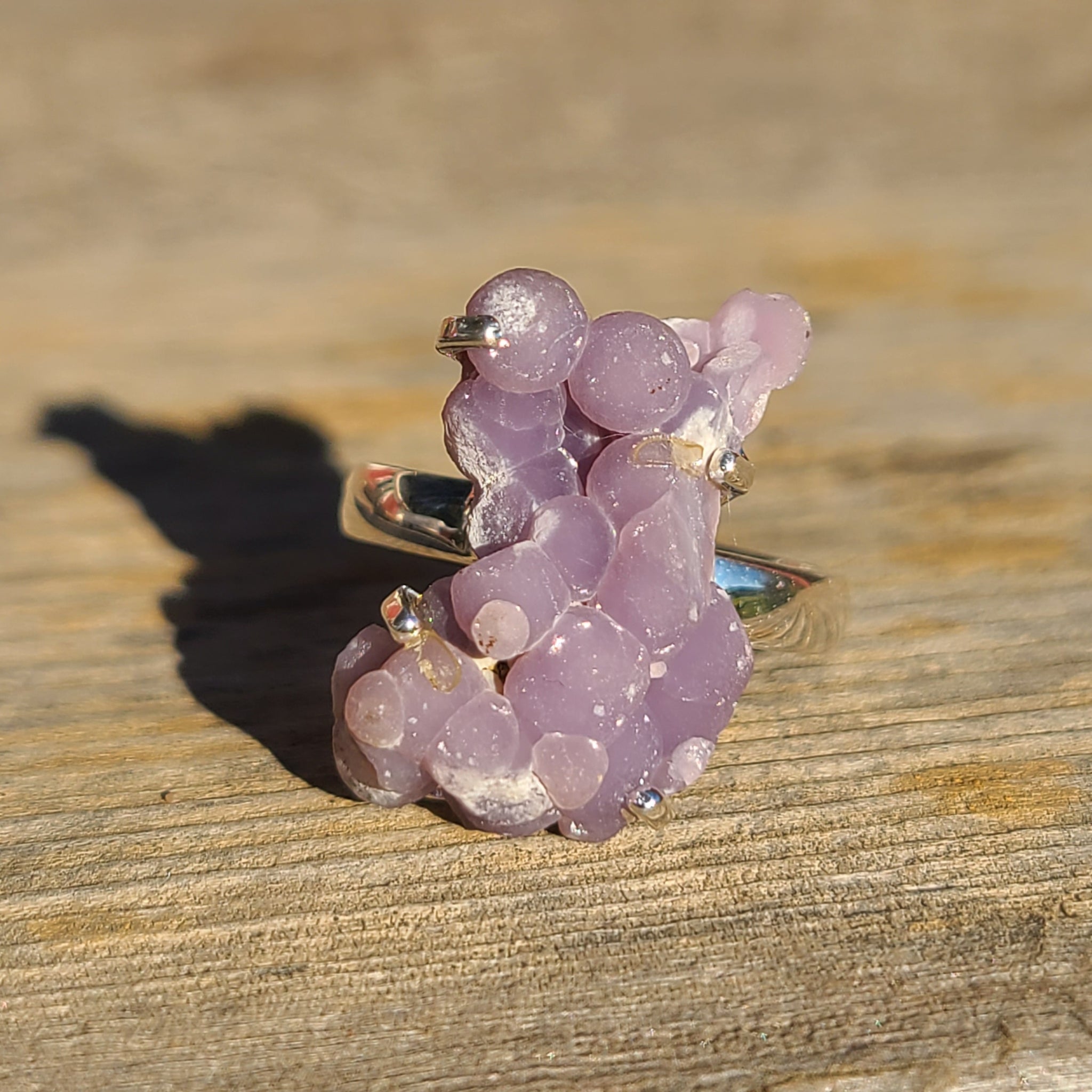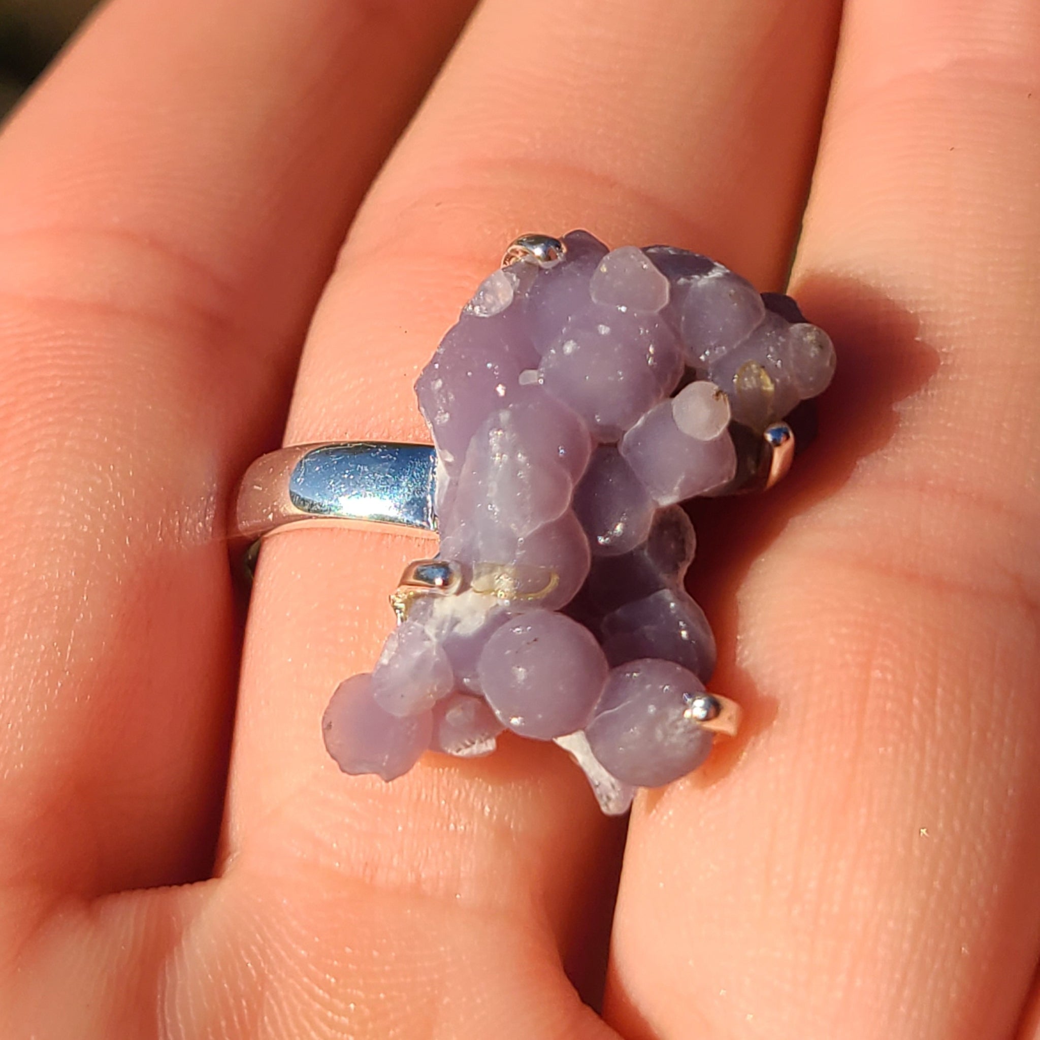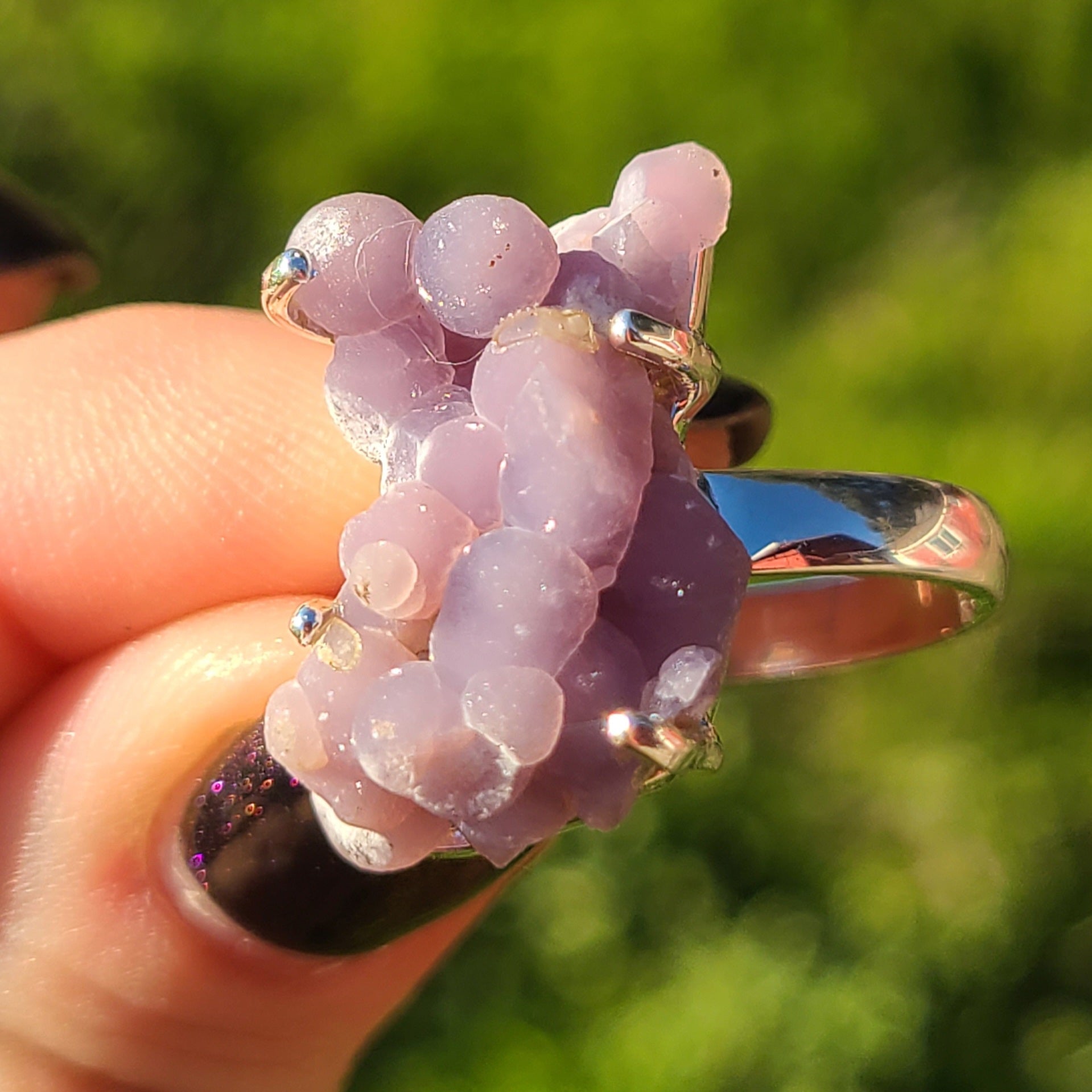 ~Grape Agate Manakara Botryoidal Crystal 925 Ring~
