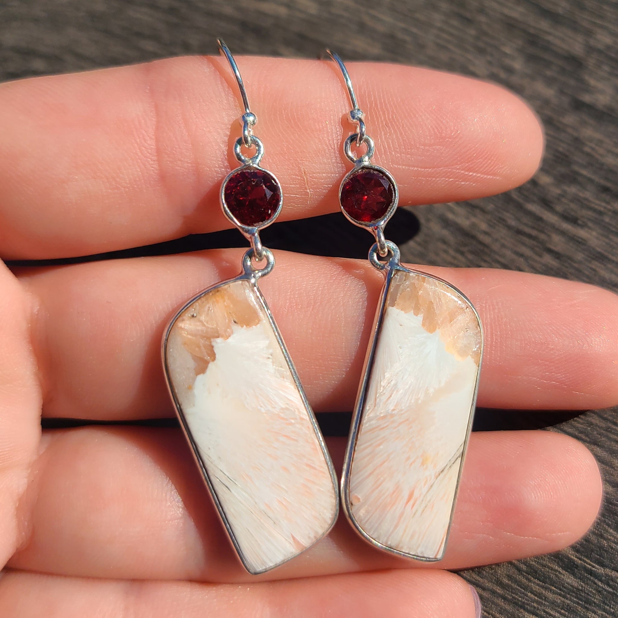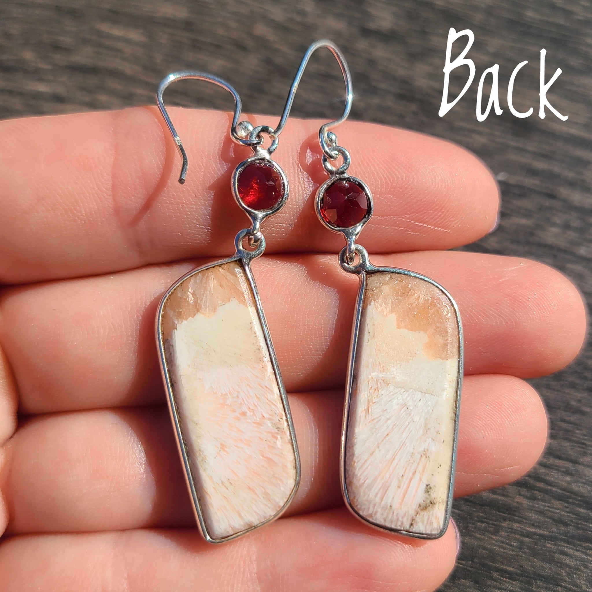 ~Orange Scolecite - India & Garnet 925 Earrings~