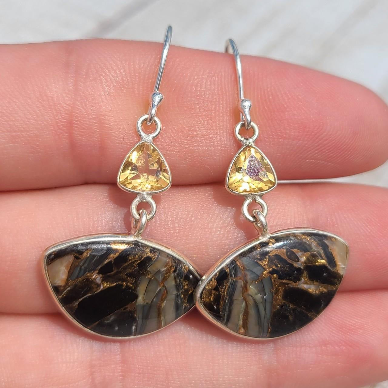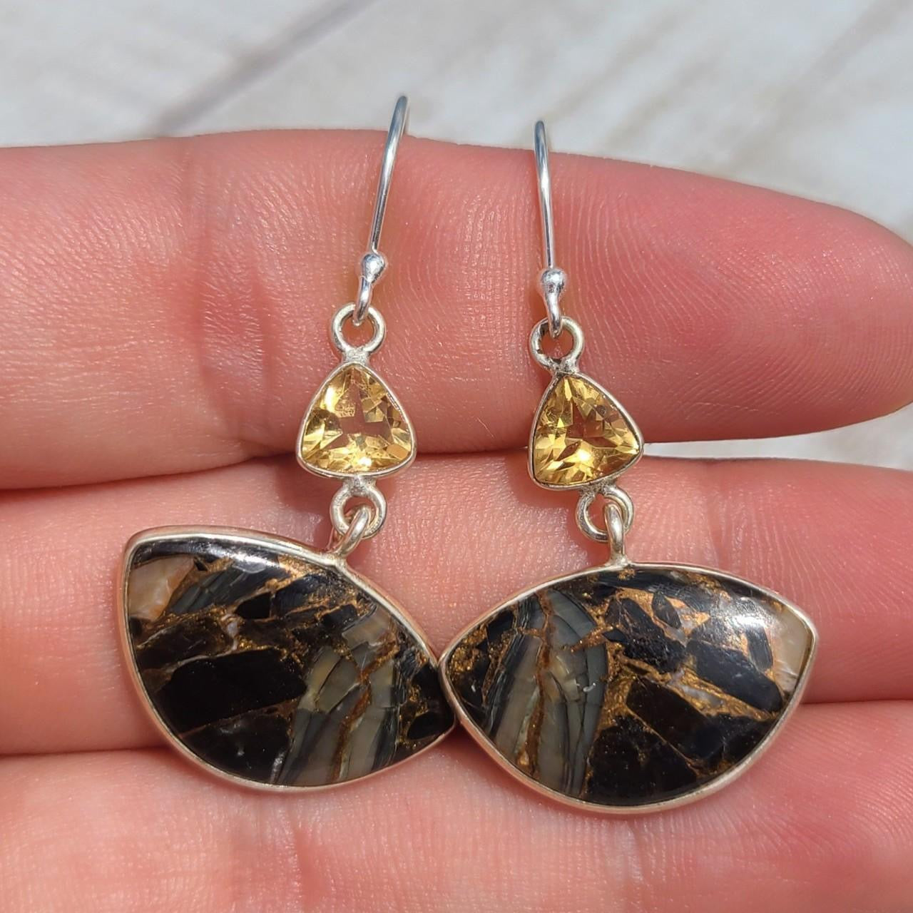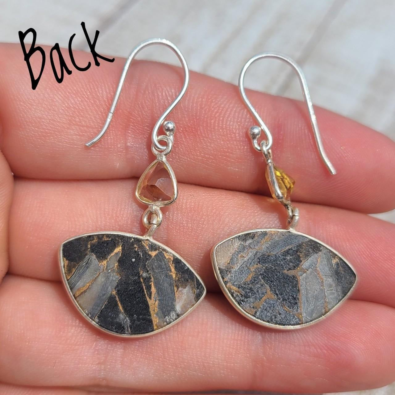 ~Shell in Black Turquoise & Citrine 925 Earrings~