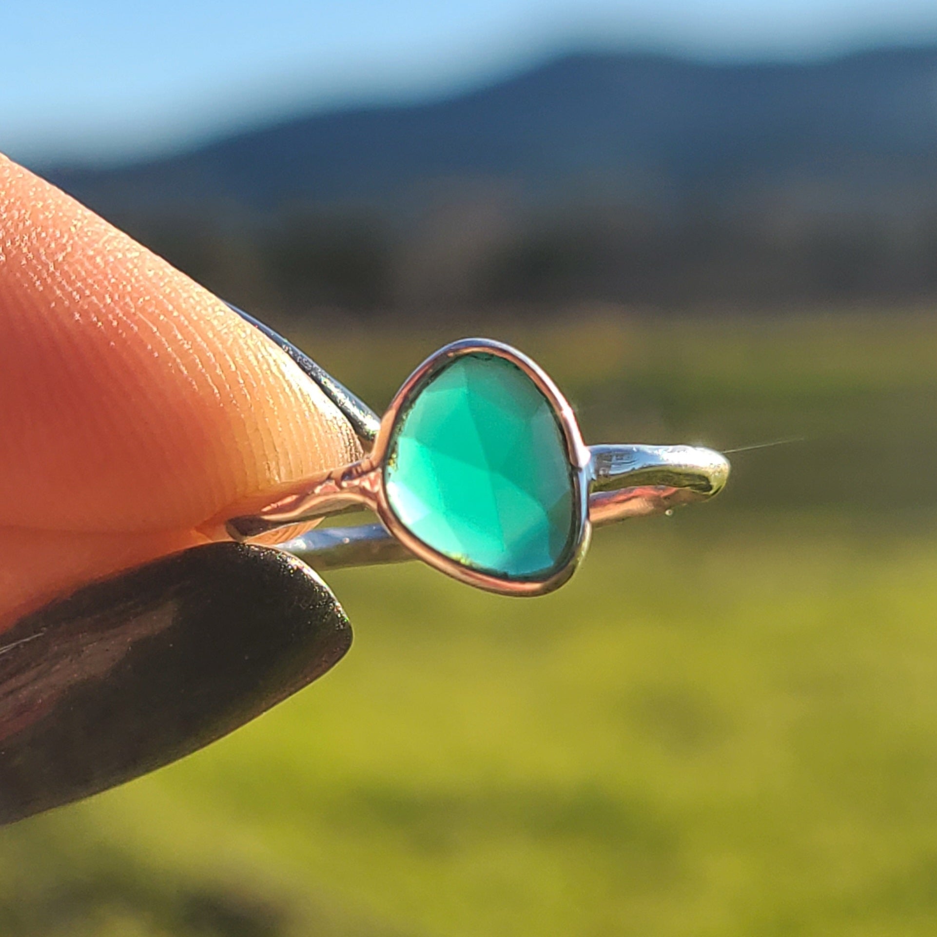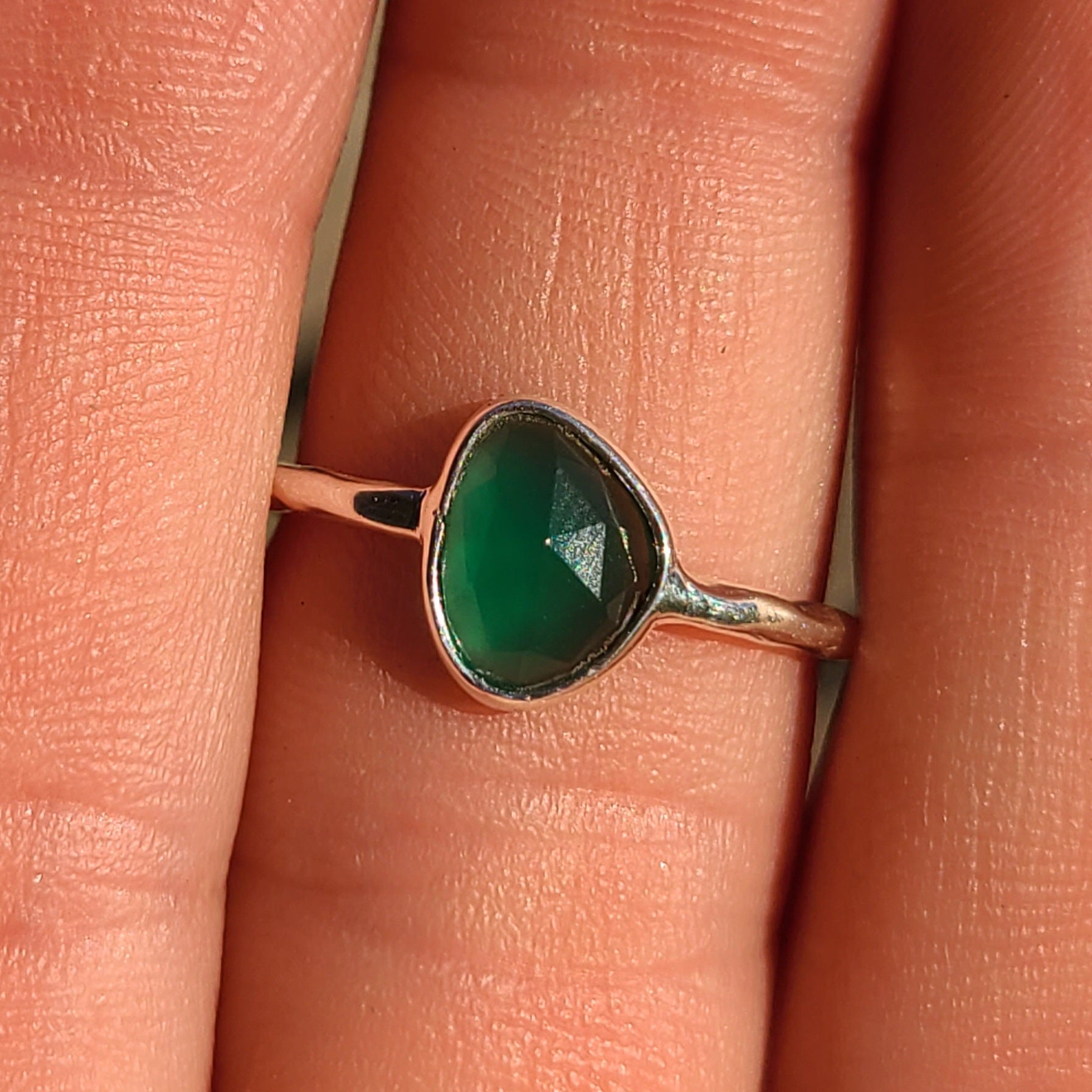 ~Faceted Green Onyx 925 Ring~